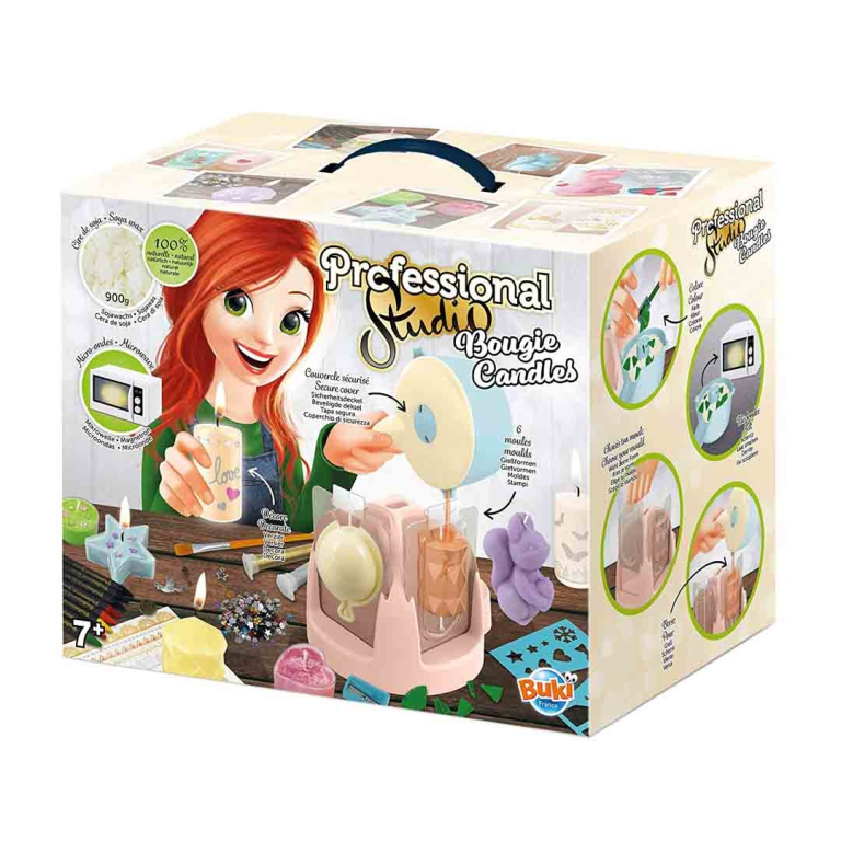 Φτίαξτε και διακοσμήστε τα μοντέρνα φυσικά κεριά της γαλλικής εταιρείας Buki France. Το κερί είναι φτιαγμένο από σόγια και το φυτίλι από βαμβάκι! Οδηγίες κατασκευής: 1) Τοποθετήστε μία ποσότητα κεριού στο ειδικό δοχείο και χρωματίστε το όπως σας αρέσει. 2) Τοποθετήστε το δοχείο στο φούρνο μικροκυμάτων για να λιώσει το κερί. 3) Επιλέξτε το καλούπι της αρεσκέιας σας. 4) Τοποθετήστε στο ειδικό δοχείο το ασφαλές καπάκι του και ρίξτε το λιωμένο κερί στο καλούπι του. 5) Όταν κρυώσει το κερί το διακοσμήτε!