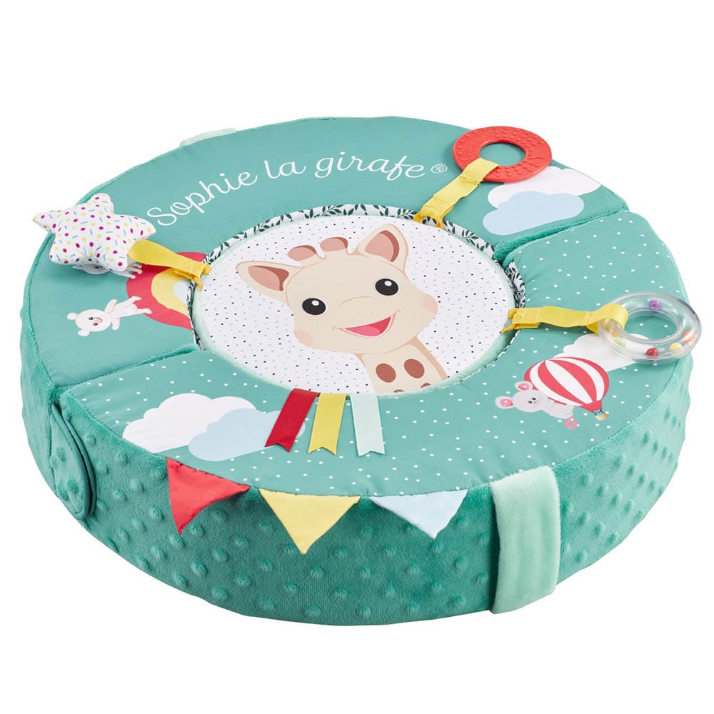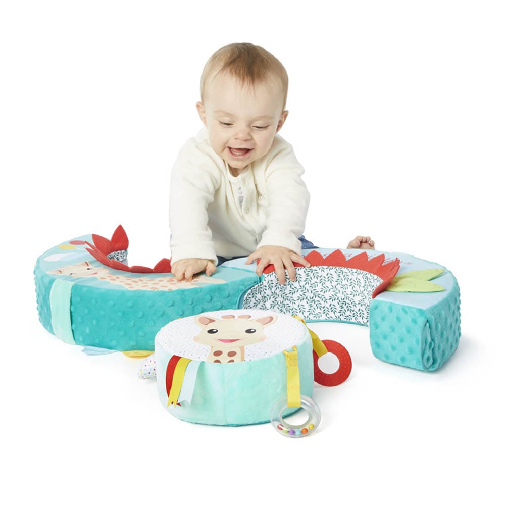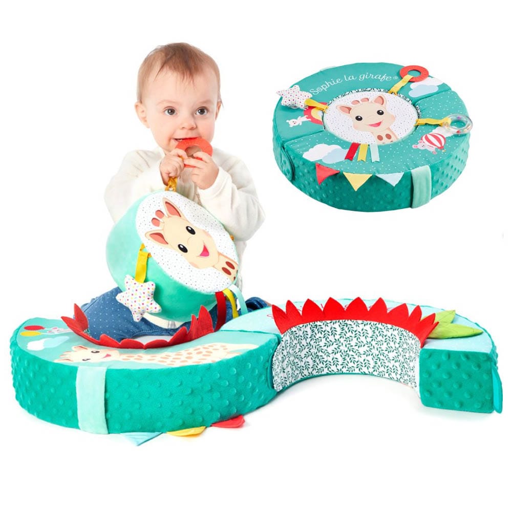 Το πολυμορφικό μαξιλάρι της αγαπημένης μας Σόφι της καμηλοπάρδαλης είναι ιδανικό για την ανάπτυξη των αδρών κινητικών δεξιοτήτων του μωρού και την τόνωση του συντονισμού χεριού-ματιού!