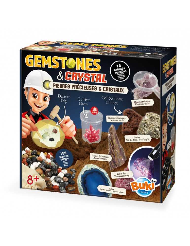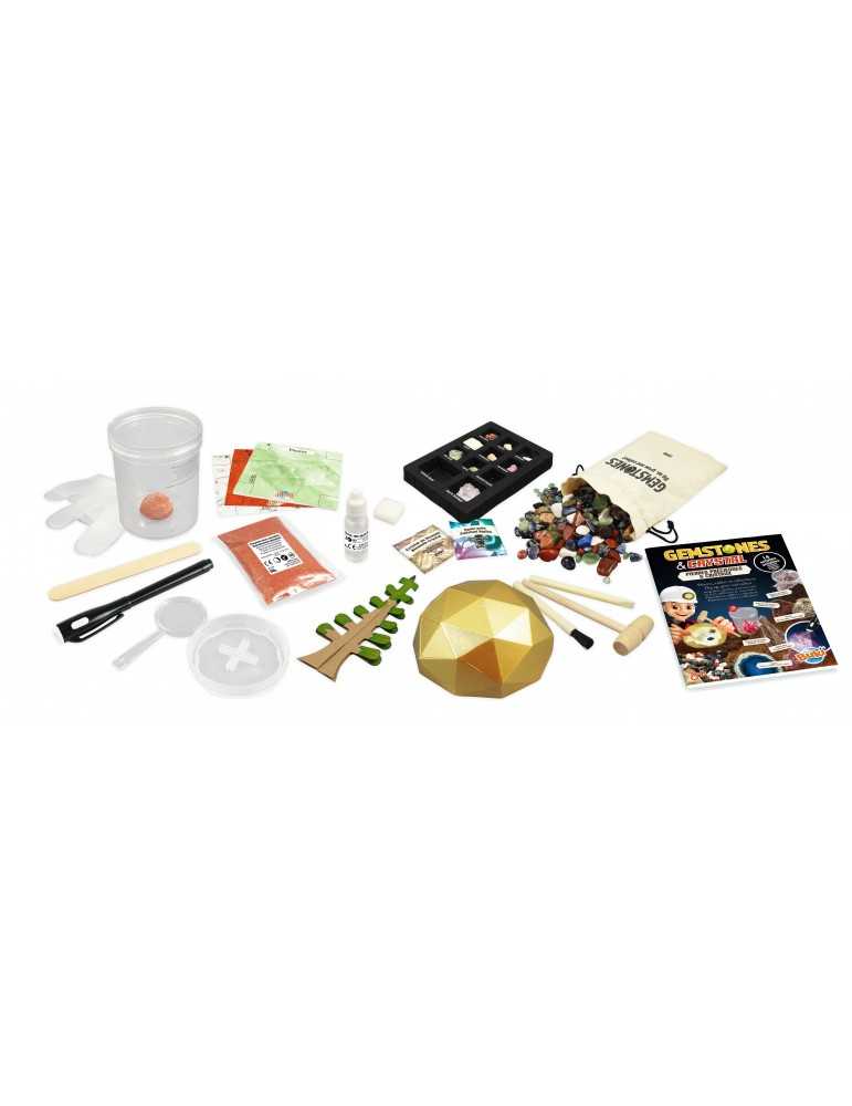 Χρησιμοποιήστε τις 27 πραγματικές πέτρες που παρέχονται για να γίνετε ειδικός στους κρυστάλλους και τις πολύτιμες πέτρες. Πραγματοποιήστε πειράματα για να ανακαλύψετε τις ιδιότητές τους. Χρησιμοποιήστε τα εργαλεία για να ανακαλύψετε 8 πραγματικές πέτρες. Βρείτε γυαλισμένες εκδοχές τους στη σακούλα (300 γρ.) και συγκρίνετέ τες με τον μεγεθυντικό φακό.