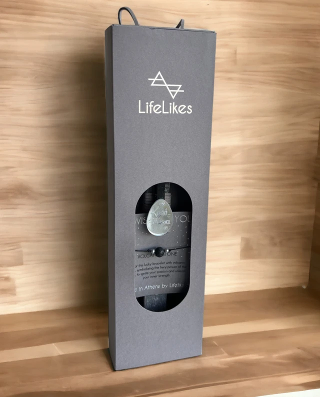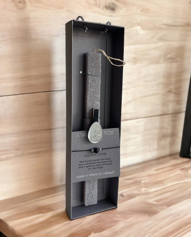 Χειροποίητη αρωματική λαμπάδα Lifelikes με βραχιόλι “Volcanic” , για άντρες! Η λαμπάδα “φιλοξενείται” μέσα σε γκρι συρταρωτό κουτί .