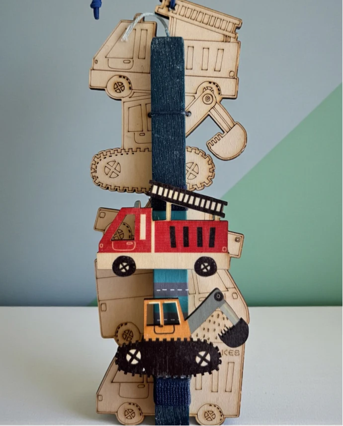 Μια αρωματική, χειροποίητη παιδική λαμπάδα Lifelikes που συνδυάζει το Πάσχα με το παιχνίδι και τη δημιουργικότητα. Συνοδεύεται από ένα εντυπωσιακό ξύλινο καδράκι με οχήματα δράσης, ιδανικό για μικρούς φίλους που αγαπούν τα εργοτάξια, τα φορτηγά και τα οχήματα σε δράση. Τα οχήματα που βρίσκονται επάνω στο κερί είναι μαγνητάκια, ώστε το παιδί να μπορεί να τα αποσπά και να τα χρησιμοποιεί στο παιχνίδι του. Το ξύλινο καδράκι δεν είναι απλώς διακοσμητικό: μπορεί να ζωγραφιστεί από το ίδιο το παιδί με μαρκαδόρους, ξυλομπογιές ή τέμπερες, δίνοντάς του τη χαρά της προσωπικής δημιουργίας. Υπάρχει επίσης δυνατότητα προσθήκης ονόματος, ώστε η λαμπάδα να γίνει ένα πραγματικά μοναδικό και προσωποποιημένο δώρο που θα κρατήσει στο χρόνο. Διάσταση κάδρου: 11*28 cm