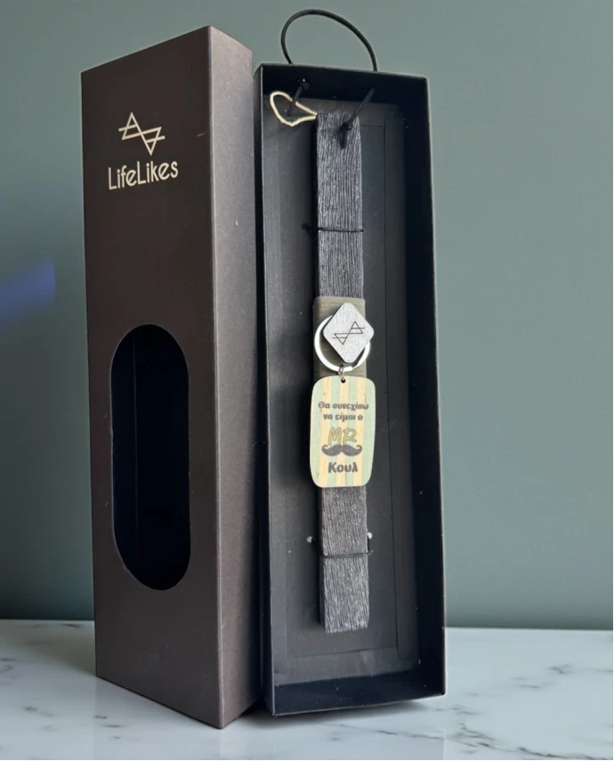 Μια κομψή, αρωματική και χιουμοριστική αρωματική πασχαλινή λαμπάδα Lifelikes, ιδανική για όσους αγαπούν τα ιδιαίτερα και καλοσχεδιασμένα δώρα. Συνοδεύεται από ξύλινο διακοσμητικό με τη φράση «Θα συνεχίσω να είμαι ο Mr Κουλ», που χαρίζει χαμόγελα και κάνει το δώρο ξεχωριστό. Το ξύλινο διακοσμητικό λειτουργεί ως μπρελόκ, ώστε να μπορεί να χρησιμοποιηθεί καθημερινά μετά το Πάσχα, προσφέροντας πρακτικότητα και διάρκεια στο δώρο. Η λαμπάδα παρουσιάζεται σε ποιοτικό κουτί LifeLikes, με χρυσοτυπία, έτοιμη να προσφερθεί! Ένα ιδιαίτερο πασχαλινό δώρο, με minimal αισθητική και παιχνιδιάρικο χαρακτήρα, που σίγουρα θα ξεχωρίσει. Υπάρχει επίσης δυνατότητα προσωποποίησης με το όνομα του παραλήπτη, για ένα δώρο που ξεχωρίζει πραγματικά. Διάσταση κουτιού: 29*9 cm