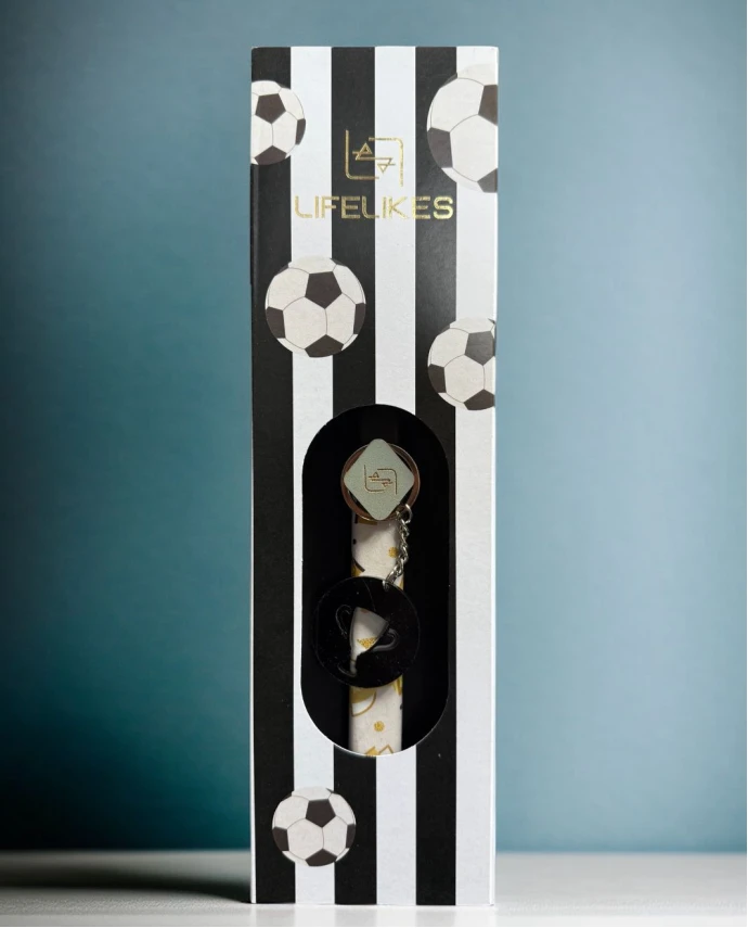 Αυτή η πασχαλινή λαμπάδα έχει σχεδιαστεί για όλα τα παιδιά που αγαπάνε το ποδόσφαιρο! Είναι τοποθετημένη μέσα σε κουτί, μαύρου χρώματος, και έχει δώρο ένα μπρελόκ με χαραγμένη τη φράση “Best Player” και διάτρητο κύπελο.