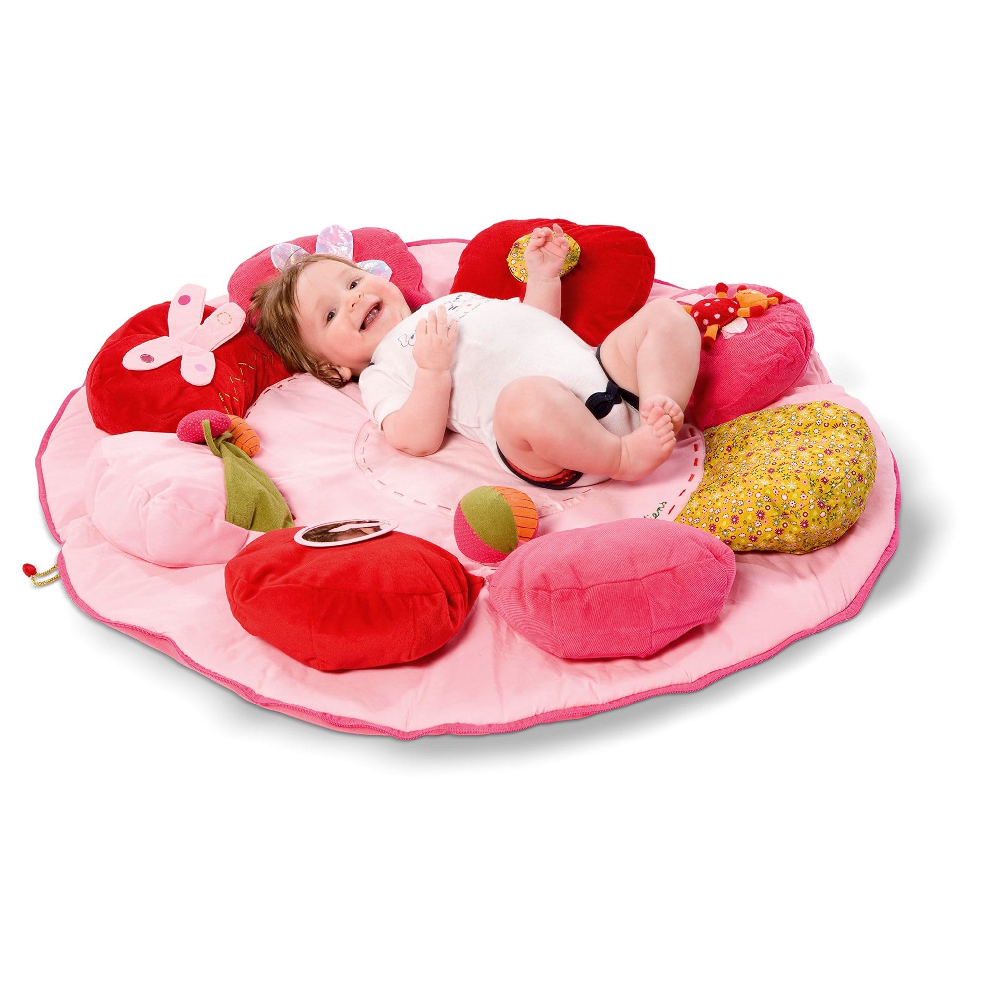 Αυτό το χαλάκι παιχνιδιού σε σχήμα λουλουδιού προσφέρει ένα μπουκέτο δραστηριοτήτων: ήχους, διαφορετικές υφές και διάφορες μορφές: ιδανικό για να διεγείρει την περιέργεια του μωρού. Επιπλέον, το χαλάκι είναι πολύ πρακτικό: διπλώστε, κλείστε με φερμουάρ και πάρτε μαζί! Εκπαιδευτικές αξίες.Τόνωση της αφύπνισης των αισθήσεων μέσω διαφορετικών δραστηριοτήτων σε κάθε φύλλο (τα φύλλα μπορούν να σηκωθούν, συρόμενη πασχαλίτσα, κρυμμένη πεταλούδα, καθρέφτης, μπάλα,). -Διαφορετικοί ήχοι και θόρυβοι (τρίξιμο, κουδούνι, κουδουνίστρα, θόρυβος χαρτιού)
