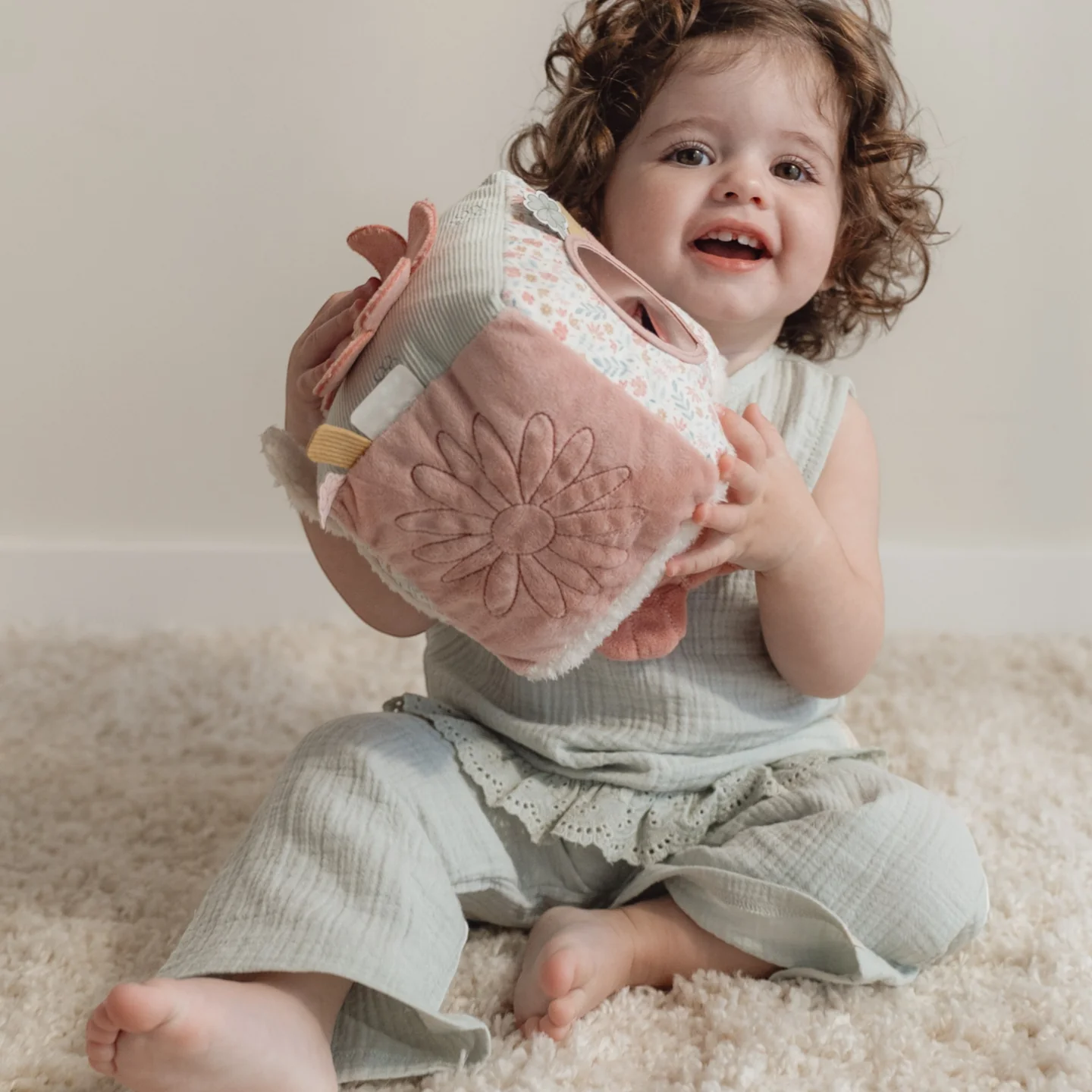 Τονώστε την περιέργεια του μικρού σας με αυτόν τον εξαιρετικά απαλό κύβο δραστηριοτήτων της Little Dutch στο ολοκαίνουργιο σχέδιο Lucky Blossom.